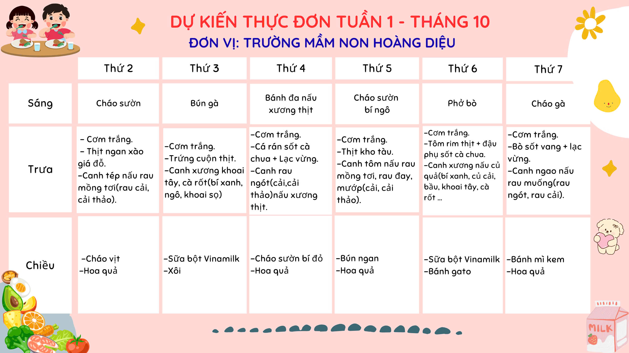 Nguyên tắc xây dựng thực đơn cho trẻ mầm non